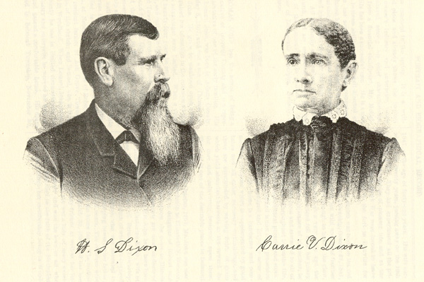HAMPTON S. DIXON, a representative citizen, and leading farmer of Douglas Township, carries on a farm on section 6. His birth occurred in Chester Township, Meigs County, Ohio, January 23, 1831. He is a son of Thomas and Mary (Northrup) Dixon. His paternal grandfather emigrated from Virginia to Meigs County, Ohio, where the father was born and reared. The mother's father, when thirteen years old, while playing at Point Pleasant, on the Ohio River, was captured by the Indians, who still frequented that part of the country, and was held captive by them for eight years. He learned their language and habits during that time, and it was with difficulty that he was induced to leave them. The mother of our subject was born in Gallia County, Ohio. After the marriage of Mr. and Mrs. Dixon, they lived for some five years in Meigs County, but in 1835 emigrated by way of the Ohio, Mississippi and Illinois Rivers to La Salle County, Ill. By trade Mr. Dixon was a boat-builder until coming to Illinois, after which he carried on farming. Politically, he was a Whig and later a Republican. Both he and his wife are members of the Methodist Episcopal Church. Their deaths occurred within twenty-four hours of each other in Oskaloosa, Iowa, in March, 1880, and they were buried in the same grave in, La Salle County, Ill. They were much respected and esteemed throughout the section in which they dwelt. Of their family of five sons and three daughters, only three are now living: Francis Marion, a member of Company H, Twentieth Illinois Infantry, was killed in the battle of Shiloh. Charles H., who was in the same company and regiment, served thirty-eight months and then re-enlisted in Hancock's Veteran Corps. He died of smallpox at Washington, D. C. The living members of the family are Hampton S.; James W., a farmer of Iroquois County; and George W., a farmer of North Dakota. Our subject is the eldest of the family. He was only four years of age when with his parents he came to La Salle County. He was reared on his father's farm and received a very limited education in the old-time schools. When twenty years of age, he taught for one term, boarding around, as was the custom in those days. Mr. Dixon remained at home until his marriage, on the 5th of November, 1852, his bride being Nancy J. Tullis, a native of Ohio who emigrated with her parents to La Salle County in 1835. Of their union, seven children were born: Hannah died when seventeen years of age; Mary died at the age of eighteen; Essie, wife of A. S. Sherwood, Jr., resides at Filley, Neb.; Alice, wife of J. C. Howe, Jr., resides in Denver, Col. Charles H., bass singer in the Du Pauw Quartet, he entered the University of Chicago at its grand opening October 1, 1892, to remain until his graduation in the classical course. He expects to take up the procession of a minister. He led to the marriage altar, July 26, 1892, Miss Mary David, daughter of the Rev. Charles David, of Onarga, Ill., and they reside in Chicago. George, a farmer of Beatrice, Neb.; and Jennie, a teacher of Filley, Neb. All of the children, with the exception of George and Mary, have been teachers, and nearly all of them attended the Onarga Seminary. On the 26th of July, 1881, Mr. Dixon was again married, the lady of his choice being Mrs. Carrie V. Jayne, nee Wright, who was born near La Porte, Ind., December 21, 1841. She is a daughter of Joseph Y. and Tabitha (Evans) Wright. Her paternal grandfather, Benjamin Wright, came from England to Pennsylvania, where he married a German lady, and later emigrated to Meigs County, Ohio. There Mrs. Dixon's father was born. Her mother was born across the line in West Virginia, though of Welsh extraction, her father being a native of Wales. At an early day Mrs. Dixon's parents removed to Indiana, living for a time at Terre Haute, then in Porter County, and later in La Porte County, where the father died at the age of sixty. The mother lived to be ninety-one years old. They were both members of the Methodist Church until after the father's death, when the mother joined the Christian Church. Mr. Wright was a well-to-do farmer, and was politically a Whig. Mrs. Dixon is the youngest of twelve children, of whom nine are still living. She was reared on a farm and her early education was such as the district afforded. She received instructions from C. P. Snow, brother of Col. Snow, at present Congressman. She supplemented her education by a course of fifteen months' schooling at the Valparaiso Normal School, then under the auspices of the Methodist Episcopal Church. When sixteen years of age, she taught her first school. In 1861, she came to Livingston County, Ill., and began her successful career as a teacher. In 1865, she entered Eureka College, from which she was graduated the following year. For some twenty-five years she followed teaching in Livingston County. A year of that time she taught in Major College, at Bloomington, also a year in the Gibbon schools and a year in Gilman. She was first married in Livingston County, December 25, 1868, to Milton O. Jayne, of Ohio, and a teacher by profession. That calling he followed for a number of years, and died July 18, 1876, in Ford County. Mrs. Dixon still owns a farm of one hundred and sixty acres in that county. Mr. and Mrs. Dixon have one child, Carrie Maud. Until thirty-eight years of age, our subject followed farming as an occupation, and at that time again turned his attention to teaching. He began his school without a certificate, with the understanding that he would teach without remuneration if he was not able to get the same. It is needless to say that he did not teach for nothing, for after the first term he received a first-grade certificate and continued to hold one as long as he taught. In March, 1875, he came to his present home. The place was unimproved, only fourteen acres of it having been broken. He now owns one hundred and sixty acres, which are thoroughly tiled. For several years he has assisted