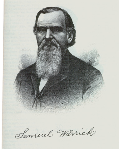 Mr. Warrick was born in Warren County, Ohio, on the 17th of June, 1811. His father, Samuel Warrick, was a native of New Jersey arid was of English descent. His mother was born in the Keystone State and came of an old Pennsylvania Dutch family. Samuel was reared to manhood upon his father's farm and was early inured to labor in the field. His educational advantages were very meagre, for the schools near his home were very primitive. On attaining his majority, he began learning the carpenter's trade, and after serving an apprenticeship of a year and a-half began to take contracts. For twenty years he followed that tirade in Ohio and after coming to Illinois. At the age of twenty-six, Mr. Warrick married Miss Delilah Jenkins, and unto them were born five children, but only one is now living, Absalom, who was born in 1840 and resides in Sheldon. The mother of this family died in 1846. In 1839, Mr. Warrick removed to Indiana and settled near Covington, where he purchased one hundred and sixty acres of land. There, in connection within work at his trade, he carried on farming for a period of seven years, or until 1846. That year witnessed his removal to Attica, Ind. While there he took stock in a railroad and by so doing lost about $1,000, which at that time was a great drawback to him. During his residence in Attica he was again married, his second union being with Miss Eleanor Clauson. They were married in 1848, and unto them were born ten children, the following of whom are living: John is now a resident of Center City, Neb., where he carries on farming; Mrs. Alice Fairman resides near La Fayette, Ind.; Daniel is a farmer of Concord Township; George is also an agriculturist of the same township; Samuel follows farming in Concord Township; and Mrs. Ella Cobb makes her home in St. Johns, Kan. The year 1853 witnessed the arrival of our subject and his family in Iroquois County. He purchased two hundred and twenty acres of land and afterward entered some from the Government. With characteristic energy he began the development of a farm, and, as his financial resources have increased, has extended its boundaries until it now comprises eight hundred and forty acres in a body. He also owns an additional tract of one hundred and sixty acres. His first home was replaced in 1869 by his palatial residence of today. Many other excellent improvements have been made, and the place seems complete in all its appointments, being one of time model farms of the community.