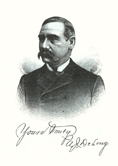 Mr. and Mrs. De Long are members of the Methodist Episcopal Church of Gilman, and Mrs. De Long belongs to the Ladies' Foreign Missionary Society. Our subject socially is connected within White Holly Camp, M. W. of A. After their marriage, Mr. De Long took his bride to Gilman, where they have since resided. Six children have blessed their union, but two, Jessie May and Guy Pool, are deceased. Minnie, Frank, Charles and Augustus are at home. The De Long household is the abode of hospitality, its doors ever being open for the reception of the many friends of the family. Mr. De Long's first work in Gilman was in the position of book-keeper in the employ of Capt. W. H. Mann, who then carried on an extensive nursery business. After a time, he purchased an interest with him, and remained in that business for five years. Succeeding that, for a year he engaged in the real-estate business with Edward Rumley. At the expiration of that time, the firm dissolved partnership, Mr. De Long since conducting the business alone. He has perhaps handled more land than any other man in this part of the county, and has settled many large estates. Besides having an office in Gilman, he has one at Danforth. He is the possessor of some fine farm property, one hundred and fifty-five acres adjoining the city limits of Gilman on the south, and one hundred and twenty acres adjoining on the north. All he now possesses he has made by his own industry and good business ability. As is every good citizen, Mr. De Long is much interested in the advancement of educational interests, and is now President of the School Board. For many years he has been a member of the City Council. He is President of the Gilman Building and Loan Association. He takes a great interest in conventions and in political questions, and is an active member of the Republican party. He is one of the prominent and successful citizens of Gilman, and is held in high regard by a large circle of friends and acquaintances. He is a man of great generosity and benevolence, and always has a good word and helping hand for everybody.