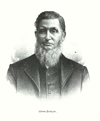 The first recollections of our subject are of life in the Buckeye State. He resided in the little town of Mt. Sterling, near Zanesville, and afterward removed to the latter place. Subsequently the family went to Coshocton County. John acquired a good education in the common schools, and in 1849, when about twenty-one years of age, he came to Iroquois County, Ill., with his brother-in-law, and worked by the month until his marriage. In September, 1851, he formed a matrimonial alliance with Miss Ruth Lambert, who was born in Brown County, Ohio, on the 25th of March, 1825, and was then a resident of Iroquois. Five children graced this is marriage, but two died in infancy. The eldest now living is William, whose sketch appears elsewhere in this work; Elias, a resident farmer of Concord Township; and Sarah, who makes her home with her parents. After his marriage, Mr. Shrum purchased forty acres of land in Concord Township, and broke prairie within an ox-team to pay for it. It was a wild tract, but with characteristic energy he began its development, and soon transformed it into rich and fertile fields, he devoted his energies to farming until after the breaking out of the late war, when, in 1862, he responded to the call for troops, enlisting as a member of Company I, One Hundred and Thirteenth Illinois Infantry, as a teamster. He served three years in that capacity, and as a guard for prisoners. During his service his hearing was impaired, and he now receives a pension of $22 per month, he was a faithful soldier, and when the war was over was honorably discharged. Being opposed to slavery, on the organization of the Republican party, which was formed to prevent the further extension of slavery, Mr. Shrum joined its ranks, voting for John C. Fremont in 1856. He has served as Constable a few years, but resigned his position, as his entire time was needed in the sawmill. He now owns one hundred and forty-two acres of rich land near Iroquois, which yields to him a good income. By his perseverance, industry, enterprise and good management, Mr. Shrum has acquired a good property, and is now living retired, enjoying a well-earned rest. The family is one of prominence in the community, and well deserves representation in this volume.