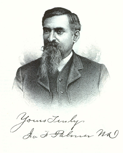 The Doctor is the eldest of eight children, two brothers and five sisters. The father of this family came to Illinois in 1852, locating first in Newark, Kendall County, hut afterward removed to Hollenbacks Grove, where he purchased a farm of two hundred acres, which he continued to improve for thirteen years. He afterward moved to the town of Bristol, Kendall County, where the family now reside. Dr. Palmer's early education, acquired in the common schools, was supplemented by a course in Fowler Institute, of Newark, Kendall County. In January, 1864, he enlisted, and was transferred soon after to the medical service of the United States army, which he served during the campaign of that year, after which he was a member of Company C, One hundred and Forty-seventh Illinois Infantry, and at the close of the war was in the United States mail service with headquarters at Macon, Ga. He was mustered out of service in February, 1866, and soon after became a student of the Chicago University. Subsequently he took a course in Bennett Medical College, and afterward went to Cincinnati, where he attended the Eclectic Medical College from which he was graduated in the spring of 1872. He first located in Milwaukee, but in August following came to Onarga.