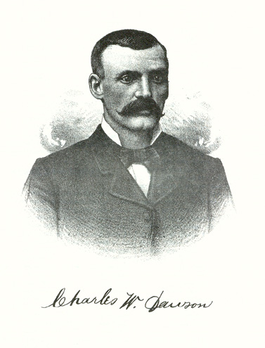 Mrs. Dawson was also born in Ross County, January 30, 1813, and she is a faithful member of the United Brethren Church. They emigrated to Iroquois County in 1854, and Mr. Dawson purchased one hundred and sixty acres of partially improved land, from which he developed a fine farm. He has witnessed much of the growth and progress of the county and has done all in his power to aid in its upbuilding. Of the Dawson family the following are still living: Silas, a farmer, who is married and resides in this county; John, who is married, and engaged in the livery business in Indiana; Charles W., of this sketch; Lewis, who is married and follows agricultural pursuits in Iroquois County; George, who is married and is a farmer of Iroquois County; and Sarah, wife of Peter Garner, a farmer of this county. We now take up the personal history of our subject, who is widely and favorably known in this community. He spent the days of his boyhood and youth until the age of sixteen years in Warren County, Ind., and attended its common schools, acquiring a good knowledge of the common English branches. The cause of education has ever found in him a warm friend, and he does all in his power for its advancement and to support any measure calculated for its upbuilding. He entered upon his business career at the age of twenty-one as a farmer and stock-buyer, and to this line of work has since devoted his energies. He has been an indefatigable worker, and as his financial resources were increased he added to his landed possessions until he now owns six hundred acres of valuable land under a high state of cultivation. It is well tiled, has good hedge fences and all the improvements of a model farm. He still carries on stock-raising and shipping, and is an excellent judge of all kinds of stock. This branch of his business has in a large measure brought him his success. November 21, 1861, Mr. Dawson married Miss Julia Cadore, daughter of Joseph and Mary Ardelia (White) Cadore. She is a native of Canada, and is of French descent. Two children grace their union: Mary A., now the wife of A. J. Hume, of Chicago, an employe on the Wabash Railroad, and Priscilla, wife of A. M. Dawson, who is engaged in the boot and shoe business in Chicago. Mr. Dawson cast his first Presidential vote for Abraham Lincoln and has since supported every candidate of the Republican party. He has held the office of School Director for sixteen consecutive years, a fact which indicates his personal popularity and the confidence and trust reposed in him. Enterprise and energy have been numbered among his chief characteristics throughout life and have won for him wealth and affluence. By his earnest efforts and perseverance, he has acquired a fortune of which he may be justly proud, and his example is well worthy of emulation. His home is a beautiful and commodious brick residence, situated in the eastern part of Wellington and built in the most approved style of modern architecture.