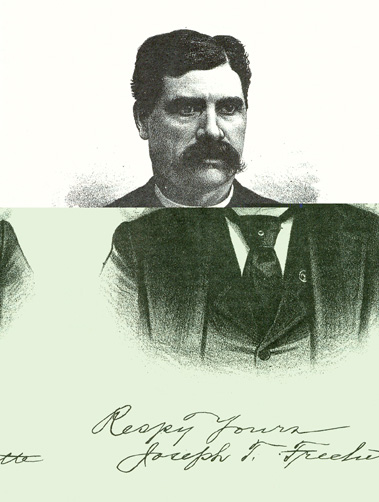 He there purchased a farm, and engaged in cultivating it for a number of years, or until the time of his death, which occurred July 5, 1886. He was a man of good business capacity, and at the time of his death had a good farm and home, which still belong to the heirs. He and his family were members of the Catholic Church. Mrs. Frechette survives her husband, and resides with her daughter in Kankakee. Joseph T. Frechette is the eldest son and second in order of birth of a family of eleven children, ten of whom are now living. The oldest is Josephine, wife of H. Lambert, of St. Mary's; our subject; Damas A., who resides on and operates the home farm; Ozilda, wife of Samuel Pilotte, a mechanic of St. Mary's; Rosalie, who married E. Leriger, who carries on the occupations of a farmer in Manteno, Kankakee County; Matilda, wife of Isaac Senesack, a farmer of Kankakee County; Dosite E., a merchant of Momence; Ephraim D., a business man of Kankakee; Albina, residing with her mother in Kankakee; and Charles H., who holds a responsible position in Chicago. The subject of this sketch came with his father to Illinois in 1864. His early days were spent in Canada, where he had good school advantages. Until eighteen years of age much of his time was passed upon a farm, and he was thus early inured to the duties and labors of farm life. He resided with his parents until his marriage in Kankakee with Miss Zenaide Alexander, the ceremony being performed February 8, 1869. For about two years he was occupied in a planing-mill, and then, going to Papineau, he worked for some time for his uncle in a lumberyard. He next went to St. Mary's, where he started a lumber yard, and there he continued for two years. He then came to Martinton, engaging in the same business. This he carried on for about four years, and in 1877 left his business connections here, and, purchasing a lot, built a business house in partnership with his father, and has carried on the business until the present day. Mr. Frechette has added to his building and also to his stock, and has built up a large trade and a fine business in general merchandise. Mr. and Mrs. Frechette have ten children; the eldest, Leontine, resides at home; Philip assists his father in the business; Hilaire, Rosanna, Matilda, Florence, Arthur, Josephine, Angelina and Emma. Four died in infancy. Mr. Frechette is interested in politics, being independent, casting his ballot for the man whom he considers best fitted to fill the position. He has held several local posts of trust and honor. He is a member of the Order of Foresters, Kankakee Lodge No. 56. Mr. Frechette and his family are identified with the Catholic Church. For twenty-eight years he has been a resident of Iroquois County, and has done much for its upbuilding and prosperity. He is widely known and much respected as an honest and industrious citizen. Mr. Frechette was chosen as executor of his father's estate in the settling up of the entire interests. This was faithfully performed without the aid of an attorney, which speaks highly for the executive ability of Mr. Frechette.