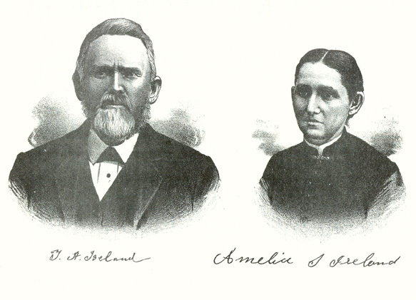 THOMAS A. IRELAND, one of the prominent and influential farmers and stock-raisers of Artesia Township, residing on section 27, where he owns and operates three hundred and twenty acres of land, is a native of West Virginia. He was born in Harrison County, on the 23d of May, 1824, and is a son of Jonathan and Eliza (Boring) Ireland, both of whom were natives of Maryland. Of their family of five sons and six daughters, six are yet living, as follows: Sarah, Thomas A., William W., Elizabeth R., Juliet and Theodore F. Those now deceased are Theophilus, Selina, Mary A., Jonathan G. and Eliza Jane. The parents of this family, emigrating Westward, took up their residence in Ohio about 1828, locating in Clinton County, near Wilmington, where they resided for about six years. In 1834 they came to Illinois, settling in what is now Bureau County, but was then a part of Putnam County. Their farm of three hundred acres was located near Princeton, and continued to be the home of Mr. Ireland until 1871, with the exception of three years, from 1841 until 1844, which he passed in Putnam County. In 1861 he was called upon to mourn the loss of his wife, and ten years later he went to De Kalb County to live with his youngest son, Theodore F., where he died on the 20th of December, 1872, at an advanced age. Thomas A. Ireland, whose name heads this record, spent the first thirteen years of his life in West Virginia and Ohio, and then came with his parents to Illinois. Amid the wild scenes of pioneer life he was reared to manhood. 1n 1850 he removed to Lee County, where he resided for seventeen years. In the meantime he was married, the lady of his choice being Miss Amelia Lyons, daughter of Andrew and Elizabeth (Darnes) Lyons, of Lamoille, Ill. Their union was celebrated on the 6th of March, 1862, and unto them were born a family of ten children: Claribel, born June 30, 1864, is the wife of W. S. Marsh, a farmer of Artesia Township; Frances Elizabeth, born September 19, 1866, is the wife of F. P. Temple, a carpenter of Buckley; George W., who was born October 18, 1867, died January 12, 1869; Theodore Leslie, born April 18, 1870; William Bruce, born on the 6th of May, 1872; Remembrance Franklin, born July 15, 1874; Byron T., born March 10, 1878; Leonidas J., born February 15, 1881; Karl Walden, born August 8, 1884; and Amelia L., born on the 9th of March, 1890. Seven of the children are at home. In the spring of 1867 Mr. Ireland removed to Ford County, locating on a farm in Lyman Township, about ten miles from Paxton, the county seat, where with his family he resided until the spring of 1876. That year witnessed his arrival in Iroquois County, and he located on a half?section of land in Artesia Township, adjoining the corporation limits of Buckley on the west. Here he still makes his home, and in connection with the development of his land, which is now under a high state of cultivation, he engages quite extensively in stock?raising, breeding horses, cattle and hogs, to which he feeds the greater part of his grain. He is a man of good business ability, and an industrious and thrifty farmer. He has a beautiful home, and his large barn, 50x70 feet, which he has recently erected, is one of the best in the county. In Ford County Mr. Ireland held various offices of trust, and was Justice of the Peace for four years. In politics he is a supporter of the Republican principles, but is not a politician in the sense of office?seeking, preferring to devote his entire time and attention to his business interests, in which he has met with excellent success.