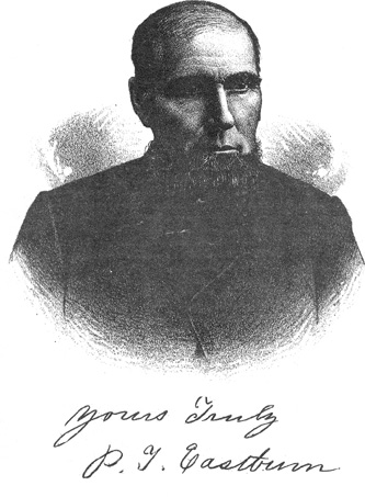 The subject of this sketch is the third in order of birth in a family of nine children, four of whom are now living. Two brothers, W. L. and Allen M., still reside in this county, and David C. is now a resident of Nobles County, Minn. Parker Eastburn has known no other home than this community. He was reared to manhood upon his father's farm and with the family shared all the trials of pioneer life. He was early inured to the arduous task of developing new land, and when a young boy became familiar with farm work in all its details. His early education, acquired in the district schools of the neighborhood, was supplemented by a college course, and he was thus well fitted for the practical duties of life and its responsibilities. At the age of twenty years he commenced farming and stock?raising for himself, and to this labor devoted his energies successfully for some years. He always kept his farm under a high state of cultivation and the well-tilled fields yielded to him a golden tribute in return for the care and cultivation which he bestowed upon them.