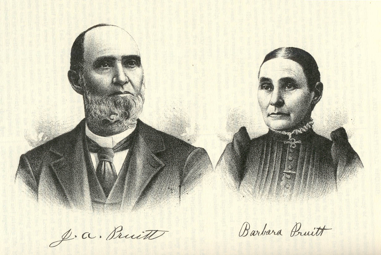 JAMES A. PRUITT, a retired farmer now residing in Goodwine, well deserves representation in this volume, for he is numbered among its early pioneers, almost forty years having passed since he located in the county. He has experienced the hardships and privations of pioneer life, and has watched the growth of the county from the days of its early infancy almost, has seen its wild land transformed into beautiful homes and farms, while towns and villages have sprung up, indicating rapid progress and advancement. Mr. Pruitt was born near La Fayette, in Tippecanoe County, Ind., August 21, 1832. His father, John R. Pruitt, was a native of Virginia, and during childhood went to Kentucky, where he was reared to manhood. He learned the trade of a shoe-maker with his father, and in 1820 emigrated to Washington County, Ind., where he was married five years later to Miss Barbara Beeker. Her grandfather was a native of Germany. In an early day he emigrated to America, locating in North Carolina, and served in the Revolutionary War, under Gen. Washington. In 1820, he emigrated to Washington County, Ind., and seven years later to Tippecanoe County, where his death occurred. Mrs. Pruitt is still living with our subject at the age of eighty-three years. In 1827, the parents of James emigrated to Tippecanoe County, and located among the Indians. He there followed his trade and took up Government land, on which he developed a farm. The city of La Fayette was not yet founded. In 1856, John Pruitt came with his family to Iroquois County, and carried on merchandising in Milford until his death on the 1st of May, 1858. He took quite a prominent part in public affairs, and was honored with a number of local offices. With the Christian Church he held membership, and his wife was a member of the Methodist Episcopal Church. In politics, he was a Whig. Their children were as follows: Lucretia became the wife of Elias Laird, and died in this county; Simeon died in Indiana in 1850; James A. is the next younger; Daniel was in the Forty-second Illinois Infantry for three years, and is now a minister of the Methodist Episcopal Church, located in Ottawa, Iowa; William Henry Harrison, who served in the Twentieth Indiana Infantry for nearly four years, is now a farmer in Nebraska; John B., who wore the blue as a member of the Forty-second Illinois Infantry for three years, is now living in Watseka; Joseph, who was also in the war, owns a fine farm near Wellington; Randolph is a silversmith in Kansas; Mrs. Elizabeth Brownlee is living in Ellsworth, Wis.; Mrs. Jennie Crawford makes her home in Kansas; and Mrs. Margaret Davis completes the family. Mr. Pruitt's earliest recollections are of a pioneer home upon a new farm, the Indians being numbered among their neighbors. His education was acquired in a school conducted on the subscription plan, which he attended for three months in the winter season, walking three miles to and from the place. When a lad of nine years, he went to live with his grandfather, and at that early age began work in the fields, following the plow. With him he remained until fourteen years of age, when he went to an uncle, for whom he worked for twenty-five cents per day. Throughout his entire life he has been connected with agriculture. In 1853, he left his uncle, and for a year was employed in a mill. In 1854, he came by wagon to Illinois, and rented a farm until the fall of 1859, when he purchased a tract of eighty acres of land on section 3, Fountain Creek Township. In 1862, he removed to section 31, Milford Township, secured one hundred and five acres, and developed and improved a fine farm, which he made his home until quite recently. There was much hard work connected with this, however, but he labored on unceasingly, and success crowned his perseverance and well-directed efforts. He was not worth $100 when he came to this county, but he now owns eight hundred acres of valuable land, besides other property. In connection with general farming he engaged in shipping cattle and hogs quite extensively. On the 17th of March, 1857, in Carroll County, Ind., Mr. Pruitt married Miss Barbara, daughter of Henry and Magdalena Heiny. Her parents were from Pennsylvania, and were of German descent. Mrs. Pruitt was a native of Wayne County, Ind., born July 13, 1836. Four children were born of their union: Mary Magdalene, who is now the wife of Peter J. Hickman, of Nebraska; Elias, who owns a fine farm in Ash Grove Township; Annice, wife of J. M. Gillett, of Kankakee; and James H. in a railroad office of Kankakee. All of the children were born and reared in this county. They all attended the public schools, and the last-named was educated in Watseka, Hoopeston and Valparaiso, while the others attended Green Hill Seminary of Indiana. Mr. and Mrs. Pruitt have been connected with the Christian Church since young, and are numbered among its faithful members and active workers. Socially, he is a member of the Masonic Lodge No. 168, of Milford. He cast his first Presidential vote for Winfield Scott, supporting the Whig party until 1856, when he voted for Fremont. Since that time he has affiliated with the Republican party. During the late war he was a strong friend of the Union, and aided his country and its soldiers in various ways. In 1886, he left the farm, and after spending four years in Watseka, came to Goodwine, where he now owns a handsome and commodious residence and ten acres of ground. Mr. Pruitt is familiar with pioneer life in this region, and as an early settler and a valued and representative citizen, well deserves representation in this volume. The history of his life is one of success, and his career is worthy of emulation, for it has been characterized by uprightness in all things.