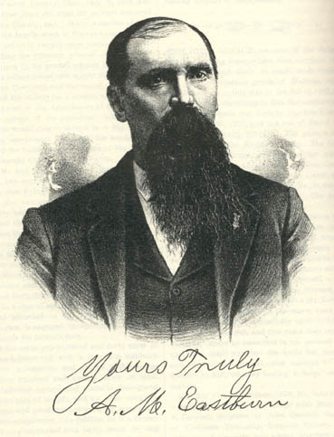 After the late war broke out, however, Mr. Eastburn laid aside all business cares, and at the age of eighteen years, responding to the country's call for troops, enlisted in Company C, Fifty-first Illinois Infantry. After remaining in Camp Butler of Springfield for about six months, the troops were sent South to Cairo, Ill. The first duty in which Mr. Eastburn engaged was in the guarding of provisions at the battle of Ft. Donelson. He participated in the engagement at Island No. 10, and aided in cutting the canal through for transports. Subsequently the troops returned to New Madrid and afterward went to Ft. Pillow. From there they Went to Pittsburg Landing, participating in the battle at that place, where they went into camp. However, they also engaged in the battle of Corinth and there Mr. Eastburn was taken sick. Receiving a thirty-day furlough he returned home. On the expiration of the month he rejoined his regiment, but was soon ordered to the hospital in St. Louis. He afterward met his command in Nashville and then went to Stone River, participating in the three days' fight at that place. He engaged in the battle of Chickamauga, and during the second day of the engagement, on the 23d of September, 1863, was wounded in the right shoulder. He was then sent to the hospital in Nashville and his wound was not dressed until he arrived in that city two days later. His injuries proved of a serious nature, and he was confined in the hospital until the middle of February, 1864, when he rejoined his regiment in Chattanooga, Tenn. At this place he then re-enlisted as a veteran and received a thirty-day furlough. After a visit to his home he went back to Chattanooga, Tenn., and in April, 1864, started on the Atlanta campaign. He participated in the battles of Resaca and Buzzard's Roost and in all the engagements until the fall of Atlanta. Subsequently he was under fire at the battle of Jonesboro, in August, 1864, and from there returned to Nashville under Gen. Thomas, opposing Hood all of the way back. They followed the rebel leader across the Tennessee River and then went into camp. At this time Mr. Eastburn was granted a furlough in order to return home and vote, which he did, casting his first Presidential vote for Abraham Lincoln. Subsequently he rejoined the troops, which were sent to New Orleans and from there to Texas. Our subject received his discharge at Camp Irwin, Tex., in 1865, after four years of faithful service. When the country no longer needed his aid, Mr. Eastburn returned home and began farming on a one hundred acre tract of land which he operated for two years. He now owns three hundred acres of rich farming land which yields to him a good income. He has also engaged extensively in raising stock, and in 1891 he built an elevator, since which time he has done a good business as a grain dealer. He is a practical and progressive farmer, and by his industry, perseverance and good management of his business interests has acquired a handsome competence. On the 5th of April, 1868, Mr. Eastburn was united in marriage with Miss Sarah Penieo, daughter of George and Mary (Kennedy) Penieo, both of whom were natives of Ohio. Nine children have been born of their union, but four are now deceased: Ida J., Gracie, May, and one who died in infancy. Those still living are: Nellie, Allen P., Dora, Harry R. and Fred L. They are still under the parental roof. Mr. Eastburn has just established a town to be known as Eastburn, Ill. It is located four miles west of Sheldon and five miles east of Toledo, on the Toledo, Peoria & Warsaw Railroad, and is in the midst of one of the finest agricultural regions of Eastern Illinois. It will be one of the best points for shipping grain in the southeastern part of the county and will no doubt become a thriving village. Since casting his first vote, Mr. Eastburn has been a stanch supporter of Republican principles and has served as Commissioner of Highways and School Director for about nine years. Socially, he is a member of the Patriotic Order of Sons of America and is a friend to all social, educational and moral interests. He gives his support to every worthy enterprise calculated to prove of public benefit, and is as true to every duty of citizenship as when he wore the blue and fought in defense of the Old Flag which now so proudly floats over the united nation.