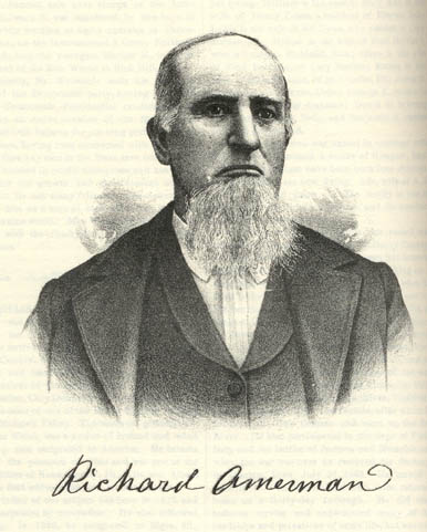 At the age of thirty-eight, Peter Amerman married Margaret McKnight, a native of Kentucky, and unto them was born a family of thirteen children. The father taught school in the winter months and in the summer engaged in farming. He died at his home in Vermillion County, Ind. Both he and his wife were members of the Presbyterian Church and were prominent and active workers. In his business dealing, he won success and acquired a handsome competence. In politics, he was a Whig. He was a great reader and hind a large library of religious and other works. His death occurred at the advanced age of eighty-seven years. Of the children in the Amerman family, Mrs. Mary Jane Mast resides in the town of Dana, Vermillion County, Ind.; Richard is the next younger; Mrs. Eliza Ralston makes her home in Dana, Vermillion County; Sarah is deceased; James is living near the old homestead; John died in infancy; John, the second of the name, is living a retired life in Clinton, Ind.; William, who was a soldier during the late war, is living retired in Hoopeston; Theopolis, who was also one of the boys in blue, is located in Dana, Ind.; Henry went to the war and was never again heard from; and Peter, who was also one of the defenders of the Old Flag, owns and operates the homestead farm. The subject of this sketch remained at home until nineteen years of age, and then began to learn the wagon-maker"’"s trade, but on account of ill health he was forced to abandon that occupation. As he was the eldest son, much of the care of his father"’"s farm devolved upon him. On attaining his majority, he went South to oversee slaves in a woodyard at Booby's Landing, Tenn., on the Mississippi River. He was a Democrat when he went to that place, but on his return was a stanch Republican. He saw the slaves of which he had had charge all sold from the block and the families broken up. Their owner had intended to free his negroes, but his death suddenly occurred and the slaves were disposed of in the manner indicated. After a year our subject returned to the North and began working with his brother-in-law. He afterward went to Clinton, Ind., and was foreman of a pork-packing establishment and a grist and sawmill for several years. It was while in Clinton that Mr. Amerman was married, October 22,1848, to Miss Hannah Watson, who was born in Ohio and reared in Vermillion County, Ind., and when six years old was taken by her parents to that county. In 1855, our subject sold out and came by team to Illinois. He purchased one hundred and sixty acres of land near Ash Grove, and until he could build a better home lived in a little shanty, 12x13 feet, not lathed or plastered. The snow sifted in through the cracks and covered the beds, and the cabin proved a poor protection from the elements. Having established himself in a home and having been blessed with a family of five children, he determined to secure a better education. Accordingly, with his three eldest children, he attended school a term, taught by George Binford. Mr. Amerman has been an active worker in the interests of public education. He has the distinction of having organized the first free school in his community, district No. 1, Ash Grove. Some years after quitting school he took up the study of law under Judge Woods and A. S. Palmer, of Onarga. After the necessary preparation he was examined by a committee appointed by Judge Woods, and was admitted to the Bar. Having practiced successfully for five years, he saw his educational attainments were so meagre that he could not hope to reach the top round in his profession, and, not willing to be a mediocre, he turned his attention to dealing in stock, a business for which he was especially adapted. The success with which he has met has proved his good judgment in selecting this occupation. In connection with dealing in stock he has been an extensive breeder of fine horses, cattle and hogs. For thirty-four years Mr. Amerman made his home upon that farm, transforming it into one of the valuable places of the county, but at length he purchased sixteen acres of land in Cissna Park, built a beautiful residence and made his home in that place until 1892, when he purchased a better residence in Hoopeston, where he can have better educational privileges for his daughter. He still owns three hundred and sixty acres of fine land in Ash Grove Township. He has platted his land in Cissna Park and has made two additions to the town. Since the incorporation of Cissna Park, he has been its Police Magistrate. In 1882, Mr. Amerman was called upon to mourn the loss of his wife, who died of heart disease on the 7th of August. She was a lady who had the love and esteem of all, and her death proved a sorrow to the entire community, as well as to her immediate family. Mr. and Mrs. Amerman had a family of thirteen children: Sarah, who is now Mrs. Cheek, resides in Hoopeston. Isaac, who was born in Indiana but was reared in this county, attended the public schools and was graduated from Onarga Seminary. He then studied medicine in Louisville, Ky., and Cincinnati, and for two years has been professor in a medical institute of St. Louis. He carries on a large infirmary in Nevada, Mo., and now has an extensive practice, and is a physician of prominence and a man of more than ordinary ability. Joseph, who is a banker by trade, on account of ill health is at home. Robert, who acquired his education in Onarga, married Miss Alice Lank, was engaged in general merchandising at Hoopestown, but is interested in the Bi-Chloride of Gold Institute of that place. Alonzo operates the old homestead farm; Charles, who was graduated from the Keokuk Medical College and attended one term in Louisville, is now enjoying a good practice in Harrisonville, Mo. Richard, Jr., graduated from the business course in Onarga Seminary, was formerly engaged in merchandising in Hoopeston, and is now interested in the Bi-Chloride of Gold Institute with his brother. George W. graduat