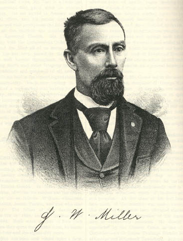 John C. Miller, the father of our subject, was born near Raleigh, N C., and during his boyhood went to Indiana. He was reared amid the wild scenes of frontier life and was educated under the instruction of a teacher, who was hired by three families and would board one week at each place and hold school there. On attaining his majority, he began life for himself and married Belinda Chamness, who came with Mr. Miller's father to Indiana in her girlhood. Their union was celebrated in 1845, and on the 10th of April, 1860, they emigrated to Iroquois County, Ill., locating in Crescent Township, where he bought eighty acres of land he subsequently increased it to one hundred and sixty acres, and later removed to Watseka where he engaged in grain dealing. His death there occurred January 24, 1881, and his wife died on the farm in 1865. Mr. Miller was a member of the Odd Fellows' society and was a Democrat and Greenbacker in politics. He held Several local offices. In the Miller family were ten children, the eldest of whom is our subject; Asa is the proprietor of an hotel at Crescent City; Sarah became the wife of Landus Romine and died in Kansas; John Franklin is engaged in carpentering in Kansas; Caroline, widow of Samuel West, resides in Missouri; Martha, widow of Oscar Short, is living in Crescent City; Thomas makes his home in Colorado; Mrs. Nettie Fast resides in Missouri; Miner and the tenth child died in infancy. Our subject was a lad of fourteen years when with his parents he came to Iroquois County. He remained under the parental roof until twenty years of age and then went to Nebraska, where he engaged in wood-chopping on the Platte River, making ties for the Union Pacific Railroad. He spent nearly two years in the West and during the last season carried on a blacksmith shop. On his return to Illinois, he again resumed farming, and secured as a helpmate and companion on life's journey Miss Rebecca J. Fiddler. Her parents, George and Harriet Fiddler, are numbered among the pioneer settlers of this county and resided in Plato when it contained but three dwellings. Mrs. Miller was born in Indiana, in November, 1850. By the union of our subject and his wife four children have been born: Emma M., born August 18, 1870; John Franklin, April 16, 1875; George Curtis, September 16, 1881; and Ruth Anna, October 6, 1883. On his marriage, Mr. Miller purchased a small farm, to which he has since added until he now owns one hundred and forty acres. He has spent one year in Southwest Missouri, and on the 24th of March, 1891, was appointed Superintendent of the County Poor Farm. On the expiration of that term, so acceptably had he filled the office, he was reappointed at an increased salary. He now has charge of three hundred and ninety acres of land, which is operated under the direction of a good foreman. The farm has an average of forty four inmates. No better person could have been chosen for the position than Mr. Miller, whose able administration of affairs has won him high commendation. Socially, he is a member of the Odd Fellows' society and the Modern Woodmen. His wife belongs to the Methodist Episcopal Church.