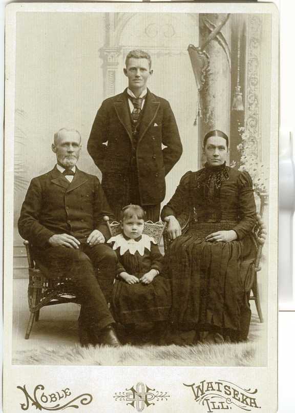 | William Alonzo Bailey and Millie Martha Parker were married in Iroquois County, Illinois on September 9, 1882. Between 1882 and the late 1880's they moved to Kankakee, Illinois. Four of their children, Edna Leona "Vera", John Leslie, Frances Lillian, and Minnie Launs, were born in either Iroquois or Kankakee County. From Kankakee they moved to Oklahoma about 1899 where their two youngest children, Mary Elizabeth, my grandmother, and William Theodore were born. | ![]() William Alonzo Bailey and Millie Martha Parker Bailey | ||