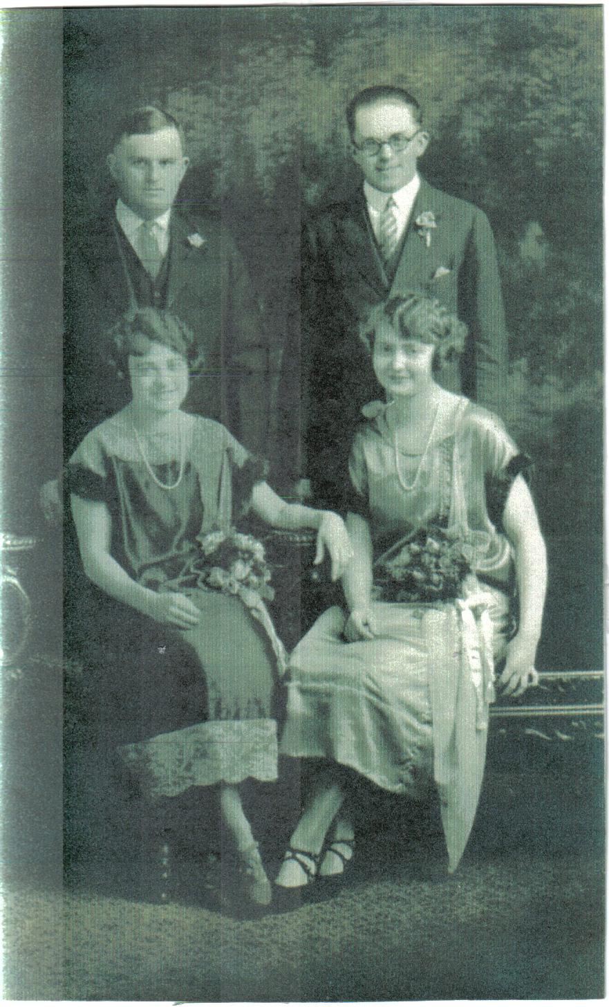 ![]() Irene Preisser-Oderwald | Left bottom, bride Irene Preisser-Oderwald, top left groom, Philip Oderwald. Attendants, bottom right, Eileen Collins, top right, Howard Oderwald. Married at St. Peter's Catholic Church, Clifton, Illinois December 29, 1924. |
